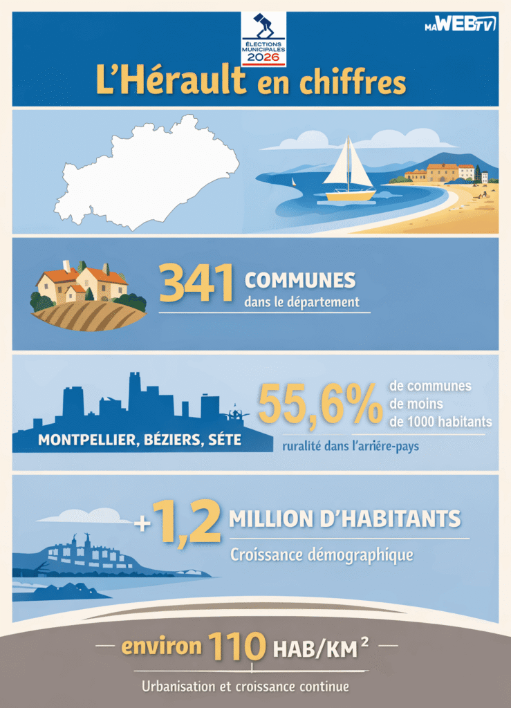 Les 15 et 22 mars 2026, les électeurs de l’Hérault seront appelés aux urnes pour renouveler les conseils municipaux de leurs 341 communes. Un scrutin particulièrement scruté dans un département marqué par une forte croissance démographique et une urbanisation soutenue.