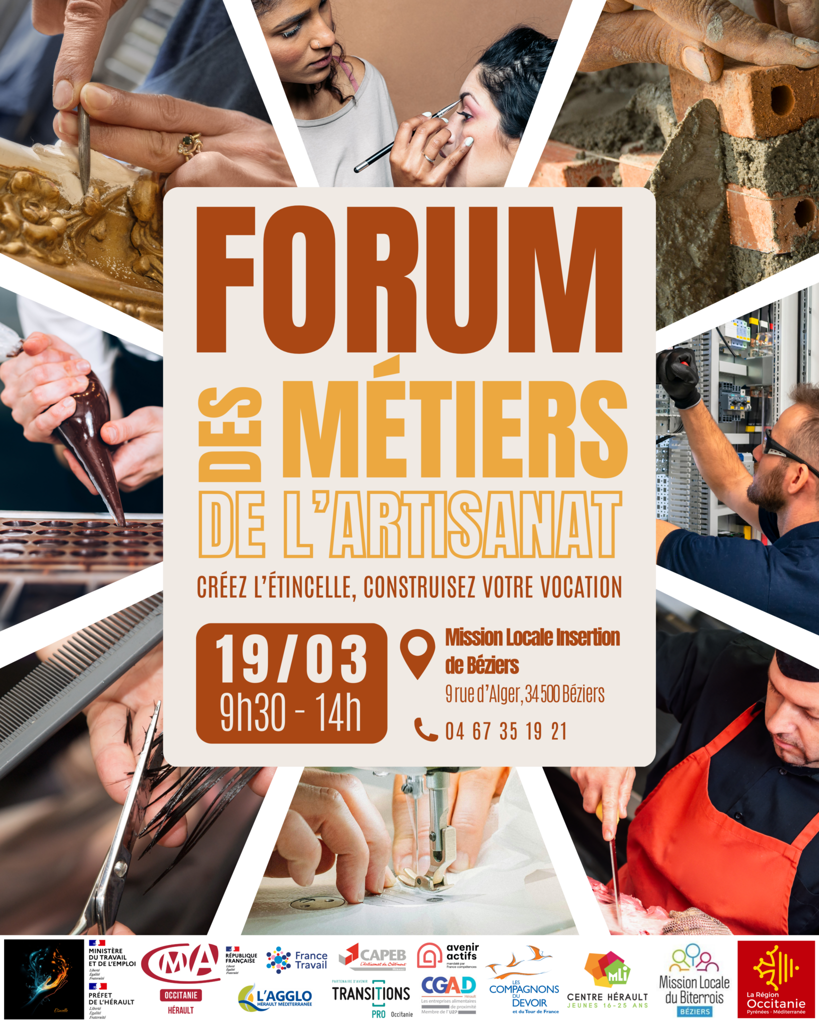 Le jeudi 19 mars 2026, la Chambre de Métiers et de l’Artisanat de l’Hérault organise à Béziers un Forum des Métiers de l’Artisanat, un événement gratuit et ouvert à tous destiné à faire connaître la diversité des métiers artisanaux et les opportunités d’orientation, de formation ou de reconversion.